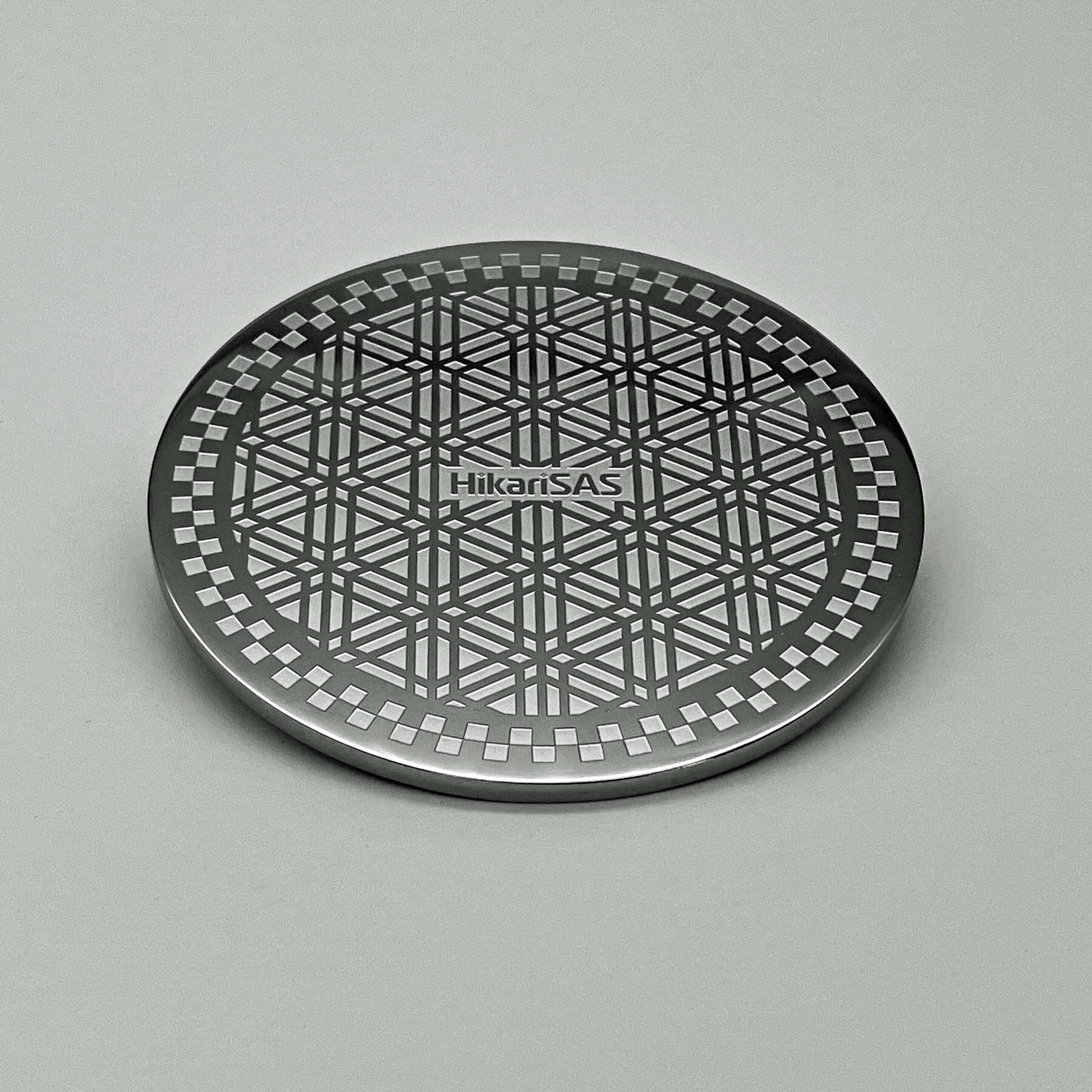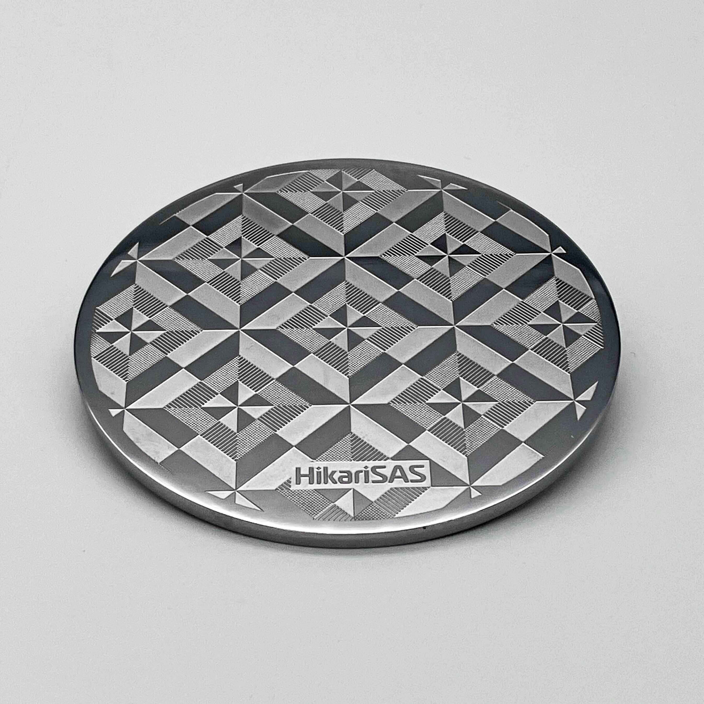 金属プレート両面に「HikariSAS」ロゴ刻印。