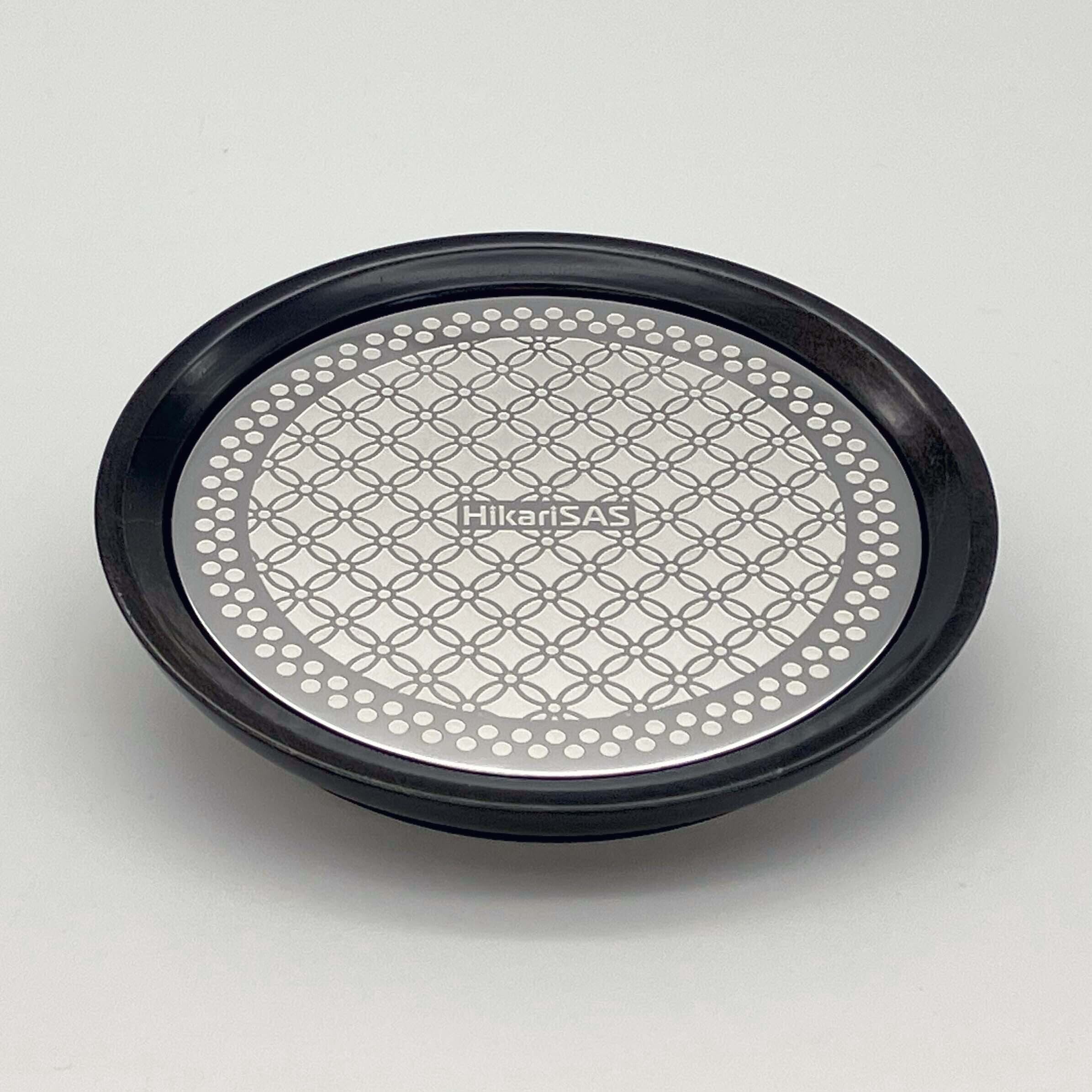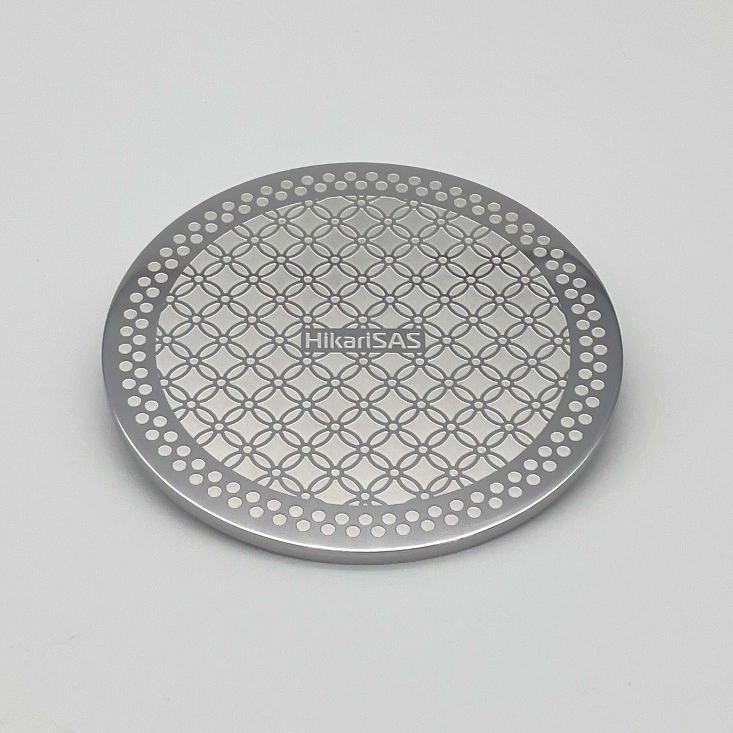 金属プレート片面に「HikariSAS」ロゴ刻印。