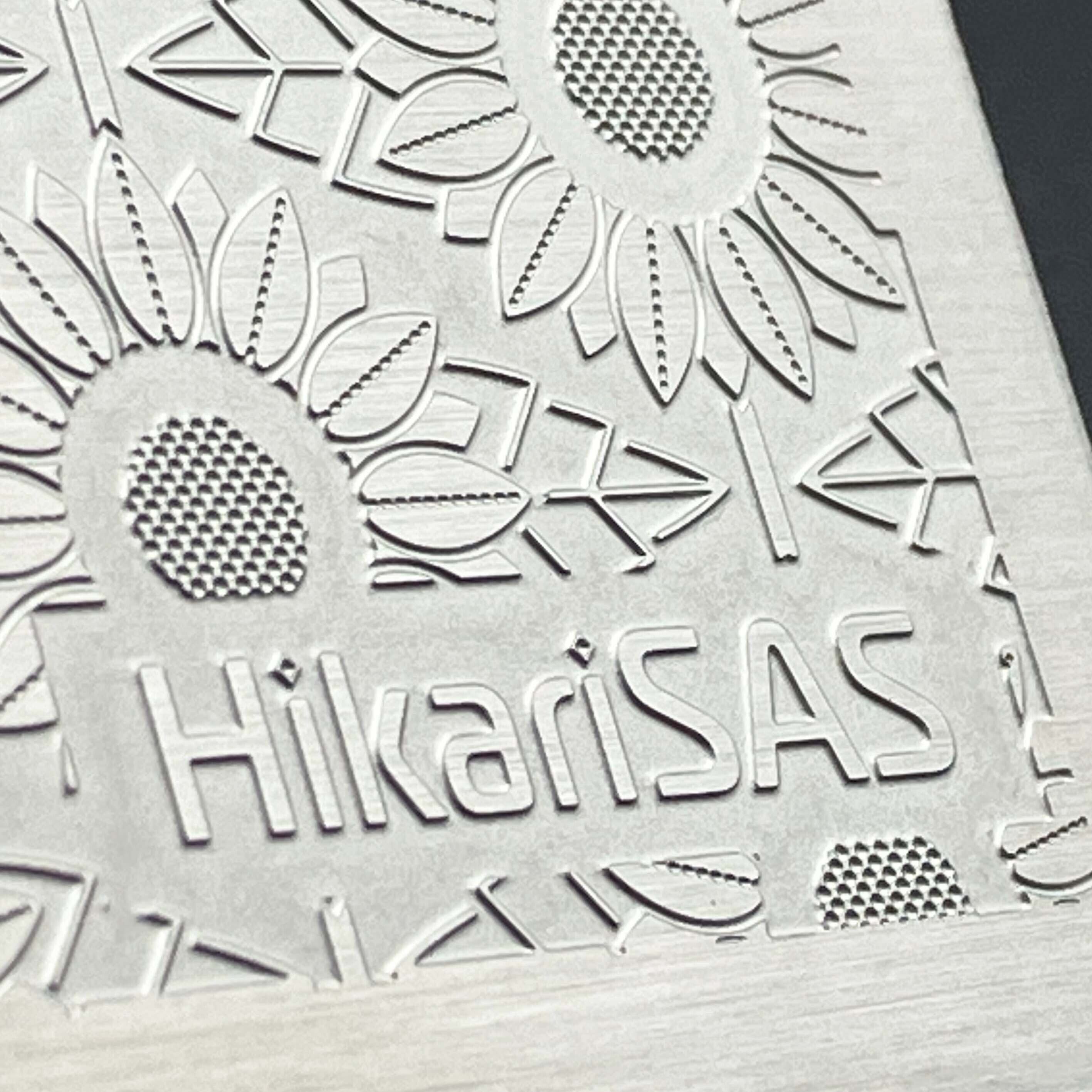 繊細なエッチングで表現したカード型ステンレスミラー。