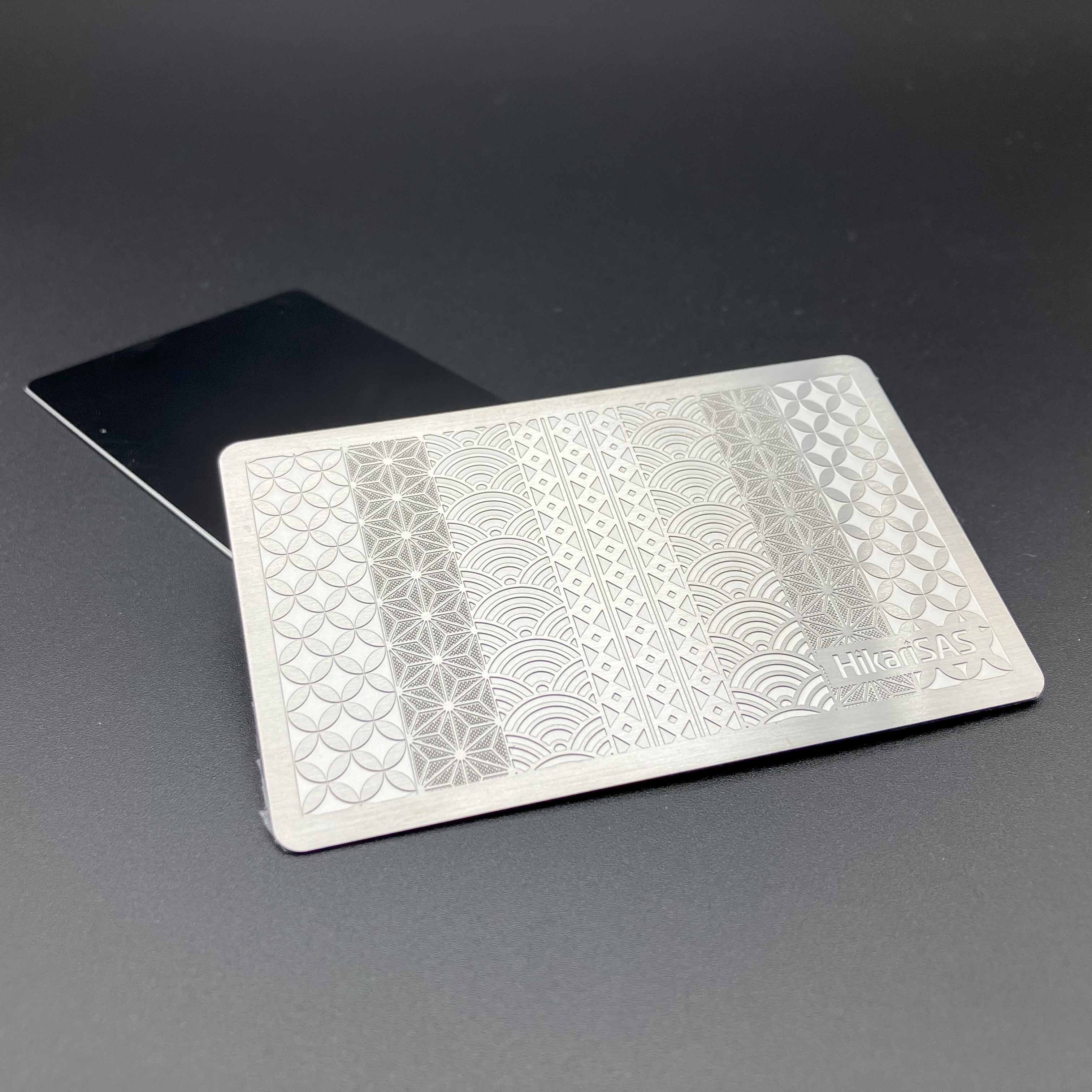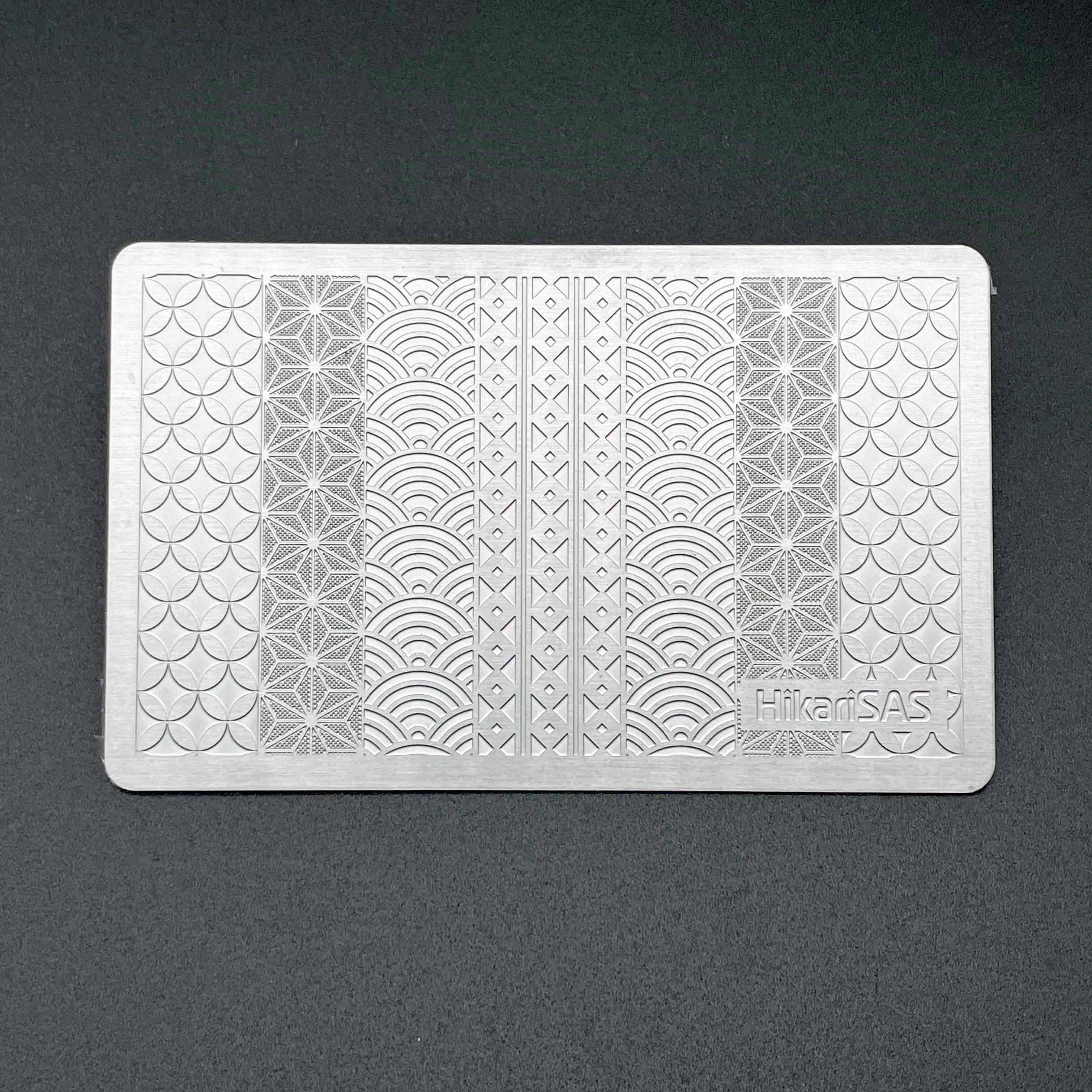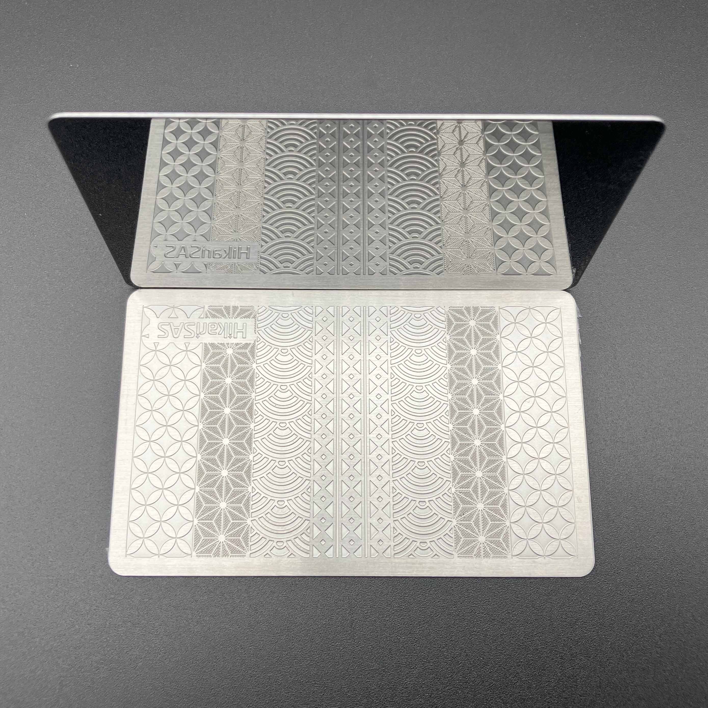 四つの吉祥文様を繊細に刻んだカード型ステンレスミラー。